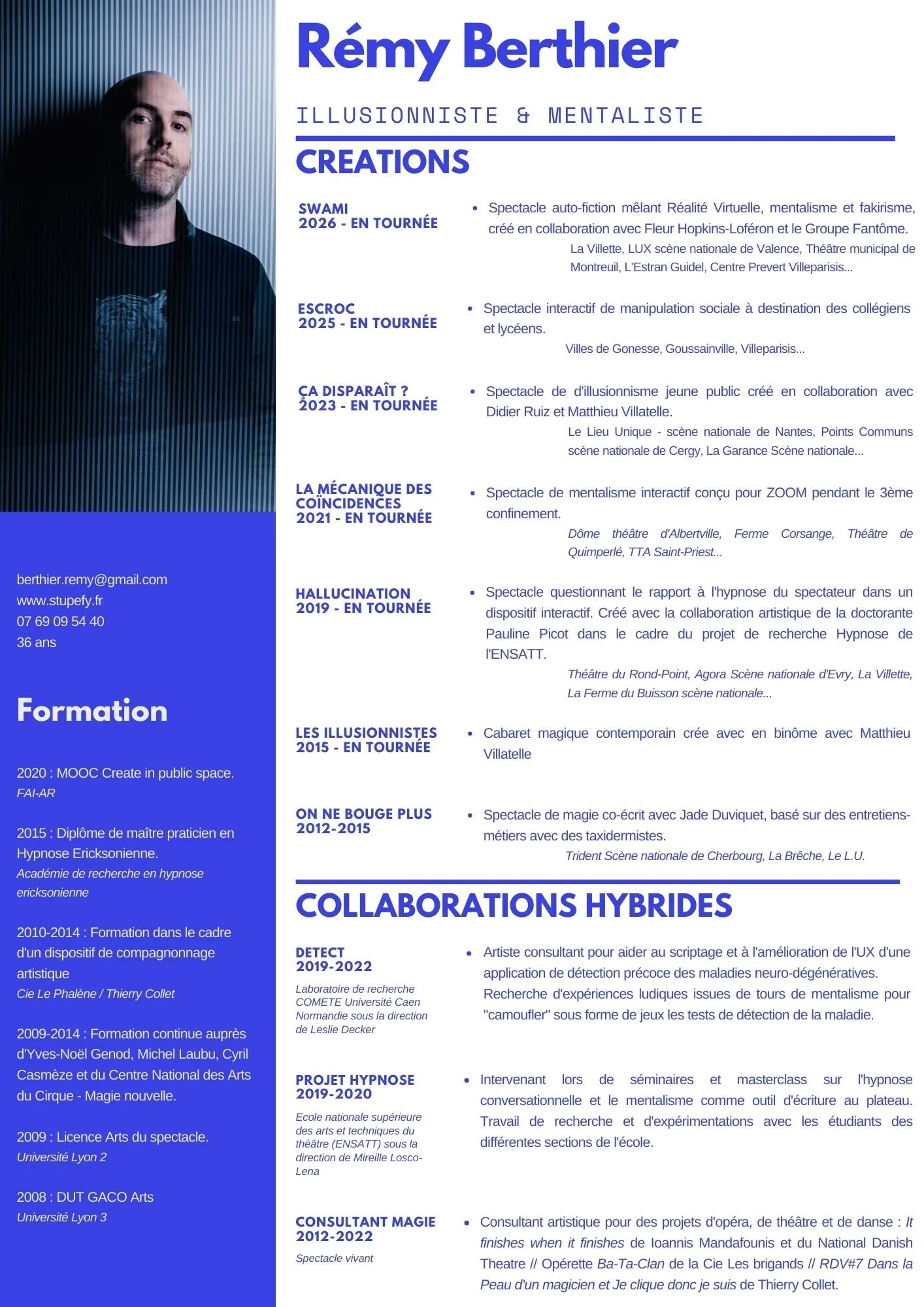 Ce dialogue sur les croyances, la compagnie Stupefy le porte également à travers des temps d’actions culturelles, de pratiques artistiques pour que - dans son parcours - le spectateur puisse traverser par la révélation des techniques de manipulation du magicien-mentaliste ses propres failles perceptives, ses biais cognitifs, et les dispositifs de manipulation qui nous entourent dans notre quotidien.